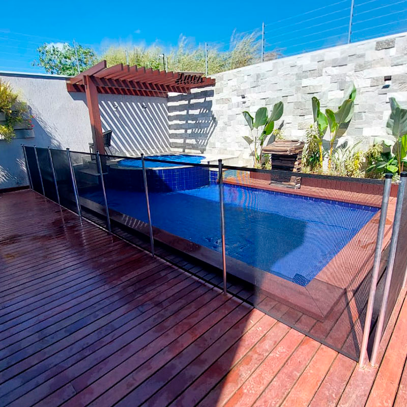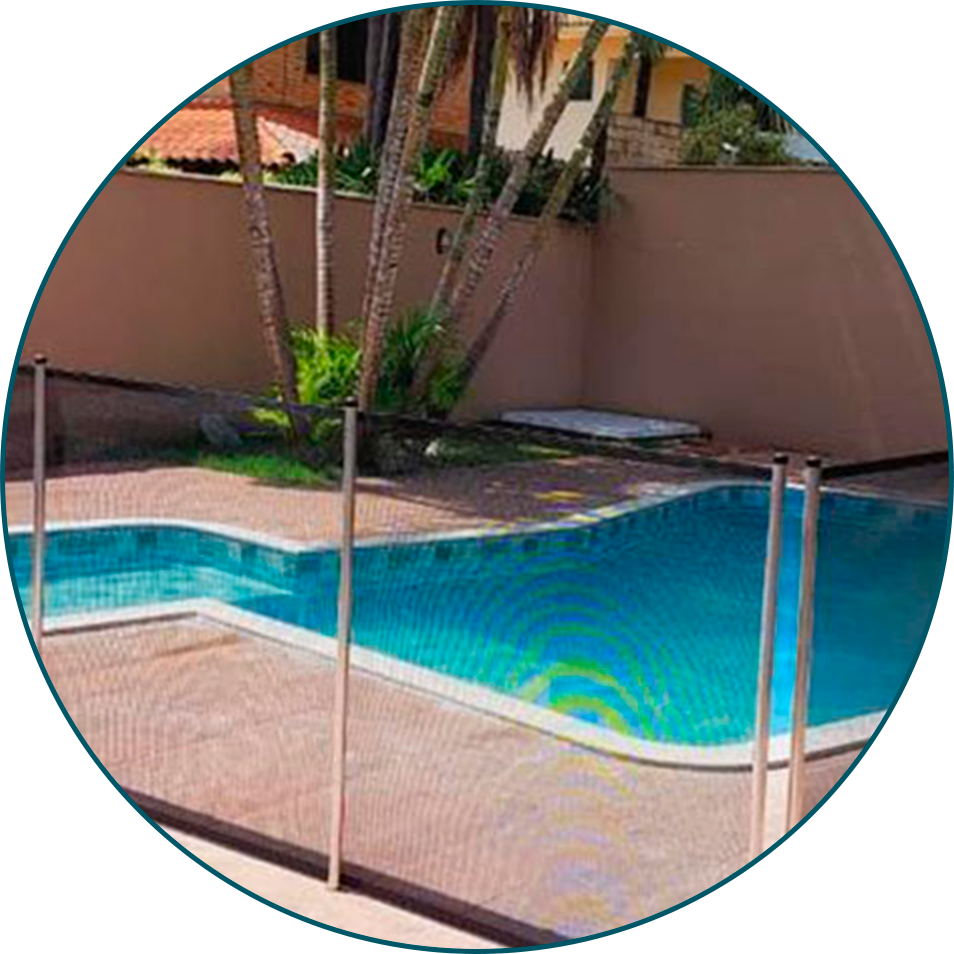 Fabricadas com malha de poliéster tratada contra cloro e raios UV, nossas cercas são extremamente duráveis e confiáveis.